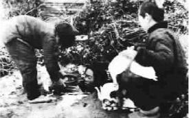 ■ 冀中子弟兵母亲李杏阁(右)给隐蔽在地道里的伤员送饭