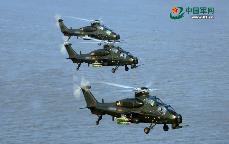 南京军区某陆航旅开展直升机掠海编队飞行训练