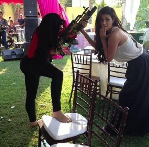 墨西哥女黑手党晒奢华生活 手持AK似大兵