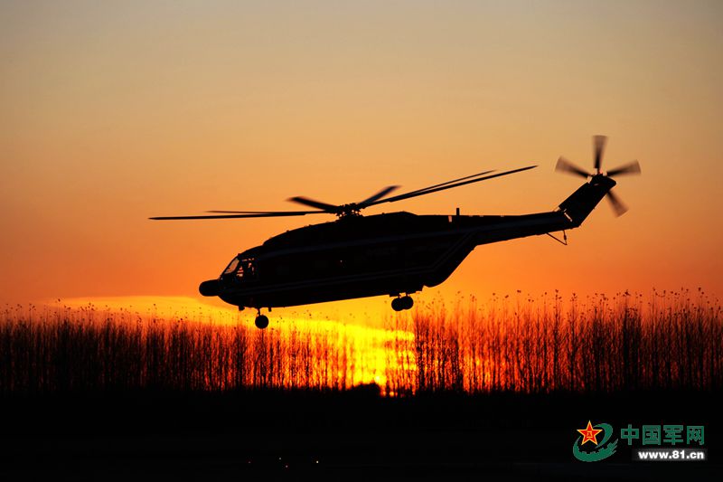 组图:看武警直升机夜间灭火