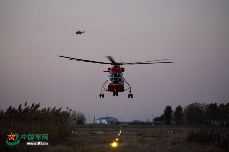 组图:看武警直升机夜间灭火