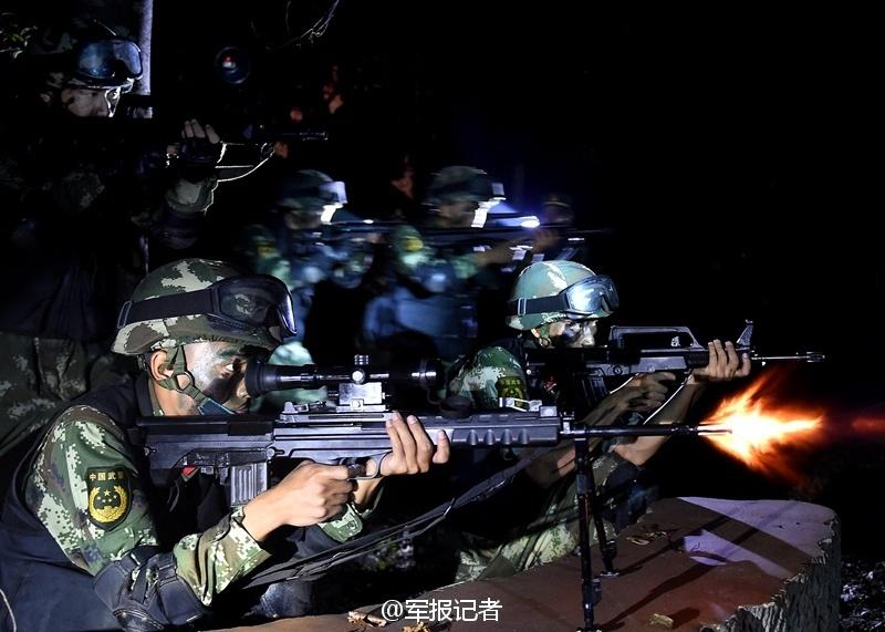 10月25日,武警上海总队七支队特战分队进行夜战训练,演练课目紧贴反恐作战任务需求,不断将官兵们逼入困局、险局、危局,被誉为“天狼突击队”的特战分队战士们在全程对抗、全程考评的演练中努力提升实战本领。(新华社)