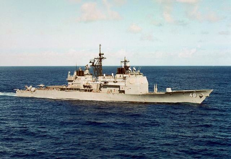 美国军舰这次没有答复,反而为了躲避苏联军舰的挤压,“卡伦”号开始加速,于是苏联SKR-6号警戒舰便开始追赶它。同时,苏联军舰开始向美军发出警告:“你舰已经进入苏联国境,请马上离开!”但美军两艘舰船没有理睬,航向不变继续向克里米亚半岛方向航行。图为美国海军“约克城”号巡洋舰。