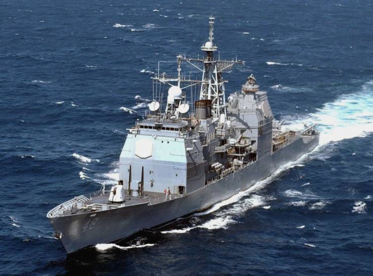 突然,苏联军舰发出了一个信号:”我舰奉命撞击你舰“,然后加速向美国军舰开去。美国人看到苏联军舰的信号却不以为然,大概是以为苏联军舰在开玩笑,甚至还有部分美国水兵在舰尾那里看着苏联军舰---他们不相信苏联军舰会撞过来。图为美国海军“约克城”号巡洋舰。