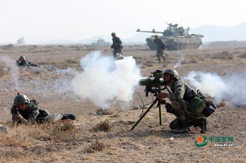 解放军激烈对抗演练 反坦克火箭出膛瞬间