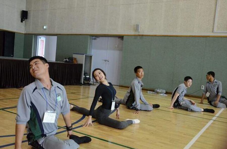 国际在线专稿:据韩联社10月26日报道,韩国淑明女子大学舞蹈专业在读博士生朴善宇(29岁,音译)日前来到京畿道的一个军营,亲自教授士兵们学跳芭蕾舞。据悉,朴善宇从今年7月份开始教授这里的30名左右的士兵跳舞。她希望可以通过舞蹈来帮助服役的士兵减少心理压力。