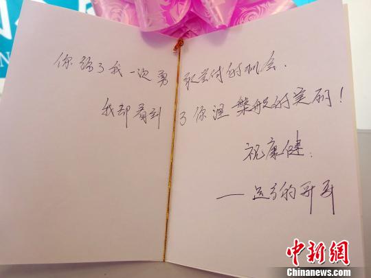徐东杰写给接受捐助患者的祝福贺卡,望其早日康复。周小云 摄