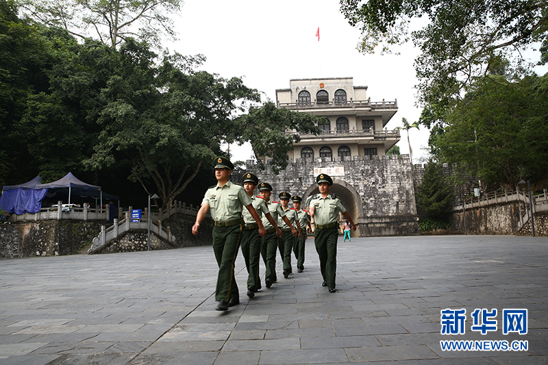 派出所官兵正在友谊关前巡逻