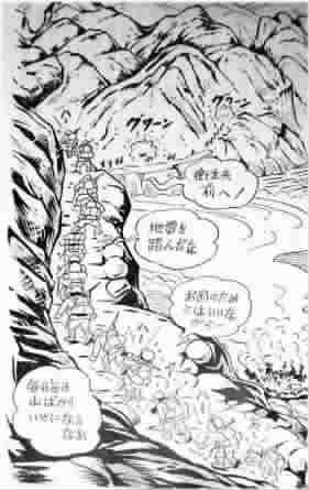 ■ 曾尝过地雷战厉害的日本老兵斋藤邦雄用一幅漫画描述当年的情景,漫画中的日语意思是:“整天翻山头,真是累死半条命啊。”“有人踩地雷啦!”“卫生兵,快来呀!”