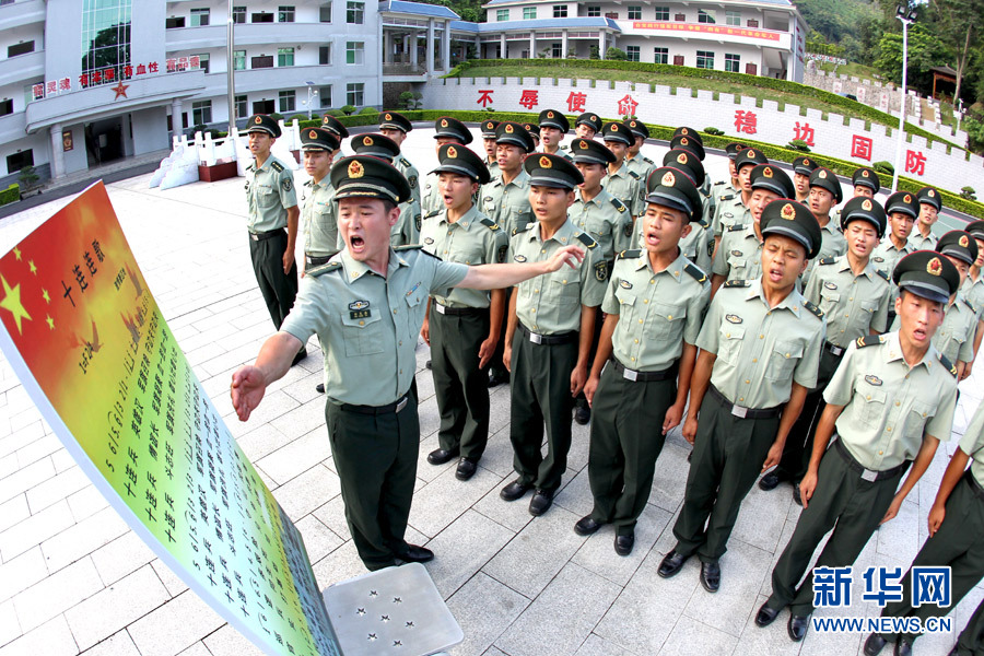 广西军区某边防团十连官兵共同唱响连歌铸牢连魂。刘金鹏 摄