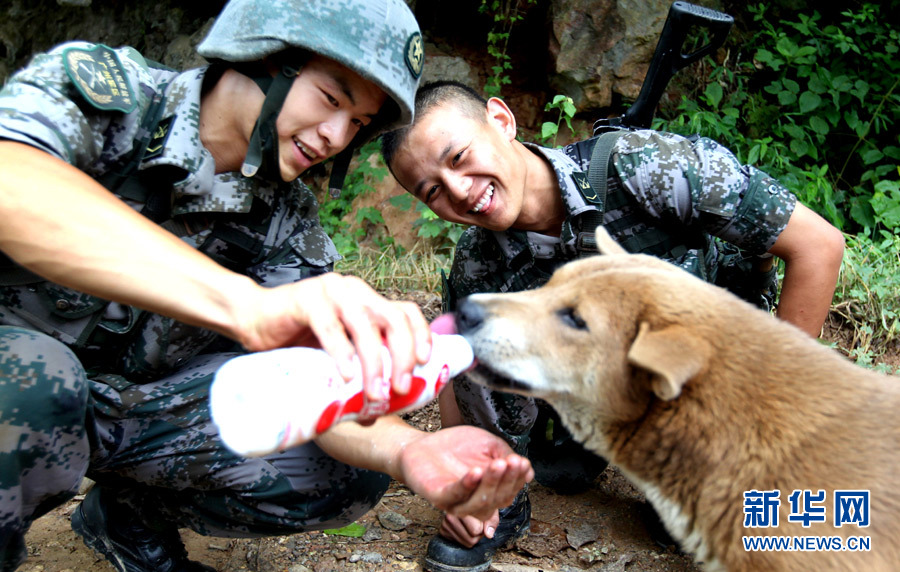 军犬被广西军区某边防团十连官兵们称为亲密“战友”。郑希胜 摄