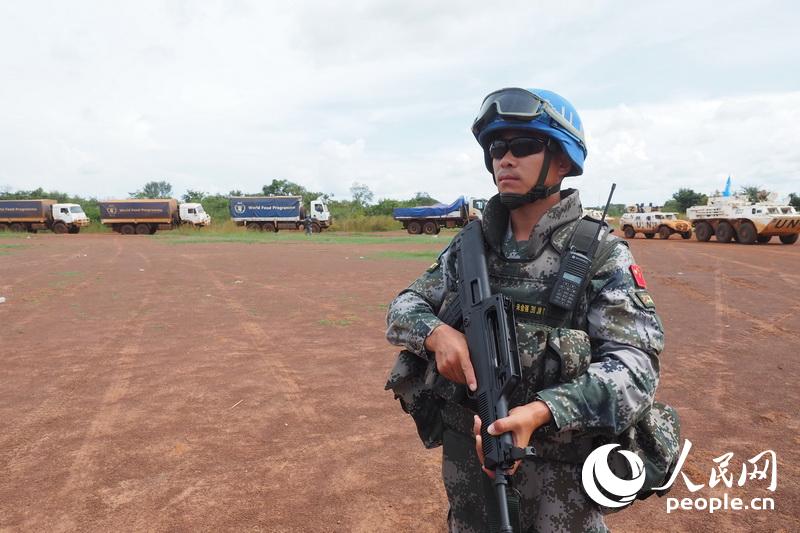 雨季的热带草原,道路坑洼泥泞。数公里长的车队蜿蜒颠簸,只能以10多公里的平均时速艰难行进。途中,1台运粮车抛锚,由于缺少零配件,他们只能拖着车继续行军。在野外露营时,连续两晚遭遇大雨,维和官兵夜间在车厢简单休息,白天仍坚持行军,一分钟都没耽搁。
