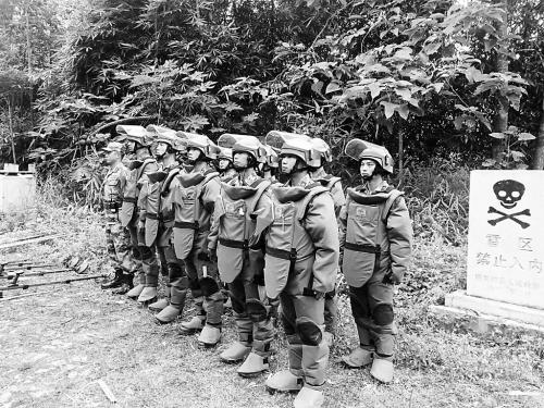 排雷人员全副武装待命。