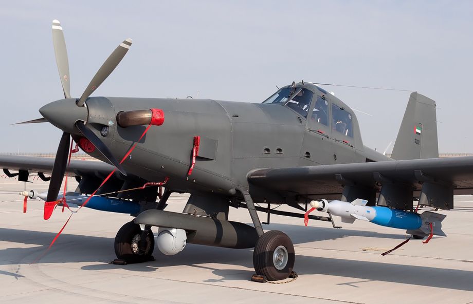 图为阿联酋空军装备的AT-802U攻击机,可见机翼上还挂载了激光制导炸弹,机身下还挂载了光电探头,该机还具备一定的精确打击能力。