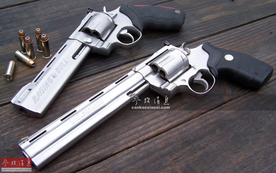上为金牛座“愤怒公牛”转轮手枪,下为柯尔特“巨蟒”转轮手枪。