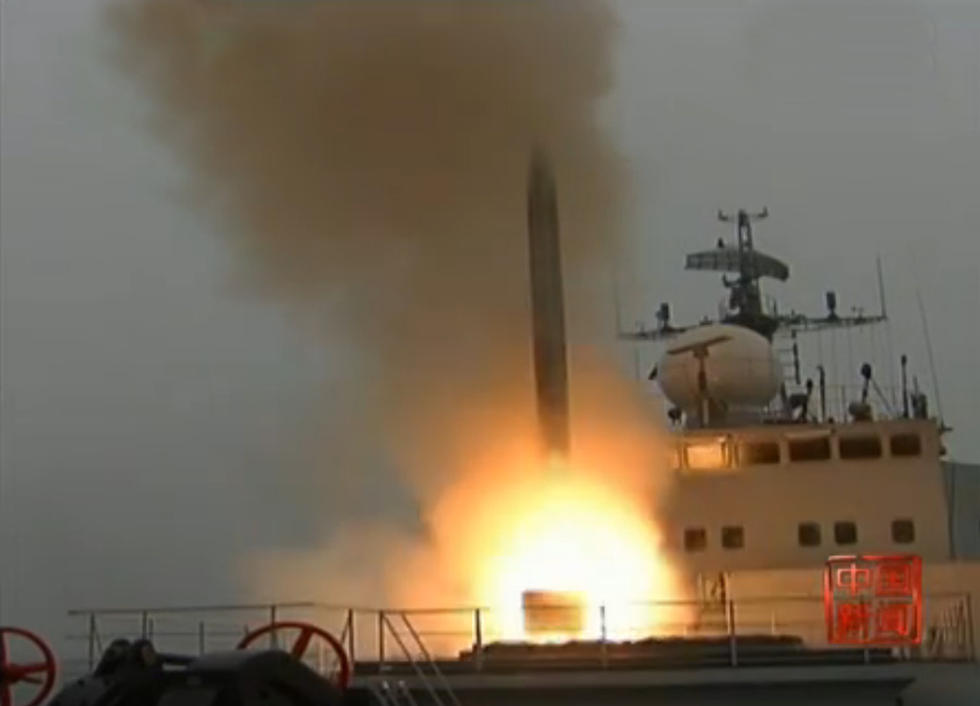 央视播报中出现了中国海军实验舰试射新型导弹的视频。画面中新型反舰导弹首次采用垂发方式,超低空掠海攻击靶舰,飞行高度距离海面仅数米。