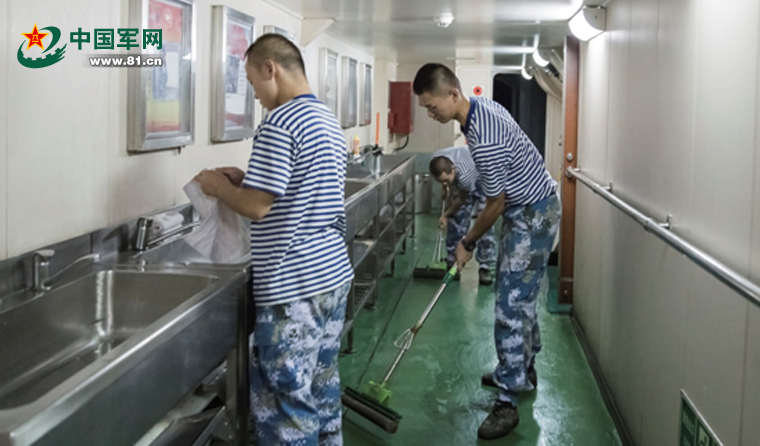 舰船是我家,要把舰船里里外外打扫干净。陈礼刚 摄