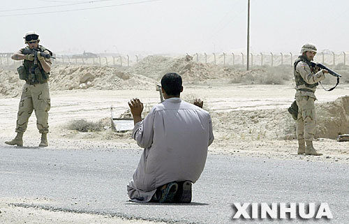 这是2003年4月5日,美军士兵在伊拉克乌姆盖斯尔港逮捕一名伊拉克男子。 (图片来源:新华网)
