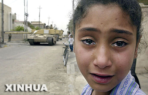 一名伊拉克女孩在英军坦克开进巴士拉时流泪哭泣。 (图片来源:新华网)
