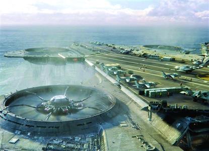 在电影《复仇者联盟》中,神盾局总部就是一艘硕大无比的飞行航母。它平时就停泊在海面上,在需要的时候就凭借4个超级涡轮引擎从海上腾跃而起。