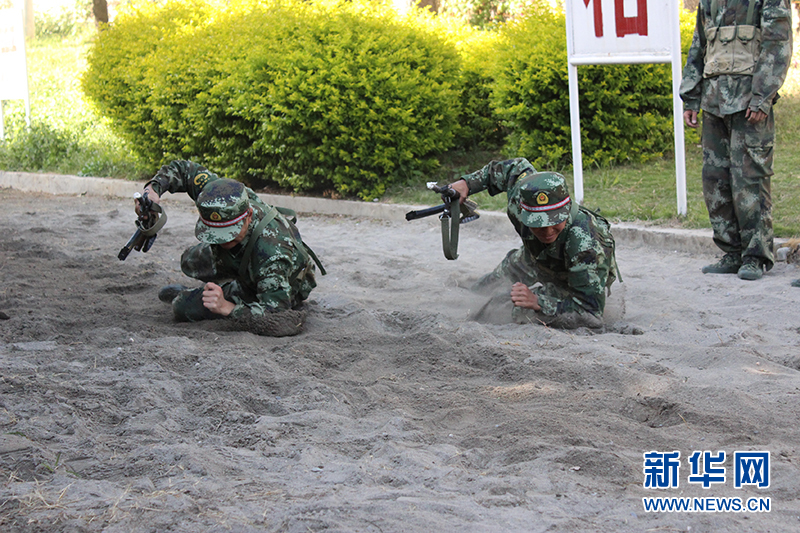 新兵进行低姿匍匐训练