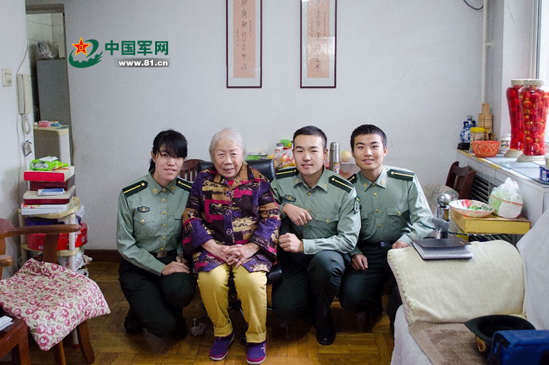 田翠云与国防生合影。