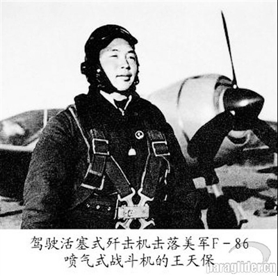 驾驶活塞式歼击机击落美军F-86喷气式战斗机的王天保。