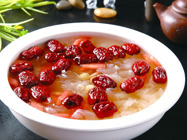 冰糖银耳是是一道传统的汉族甜点小吃。是席上珍品佳肴和滋补佳品。用冰糖、银耳各半,放入砂锅中加水,以文火加热,煎炖成糊状。