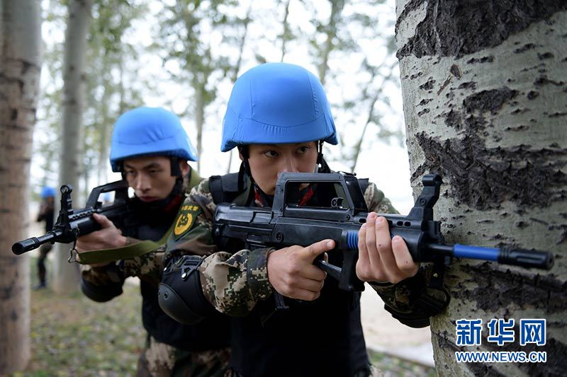 9日,中国第四支赴利比里亚维和警察防暴队在中国维和警察培训中心组织开展战术小组模拟实战演练。