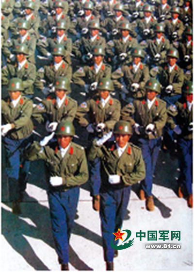 2.冬跳伞服:采用棕绿色细帆布,里衬白平布,中絮棉花制成。上衣为棉夹克式,裤子为紧腿小囊马裤。1987年,全军恢复军衔制服装改革时,空降兵改穿87式迷彩作训服,07式服装装备部队后,又改穿07式迷彩作训服。