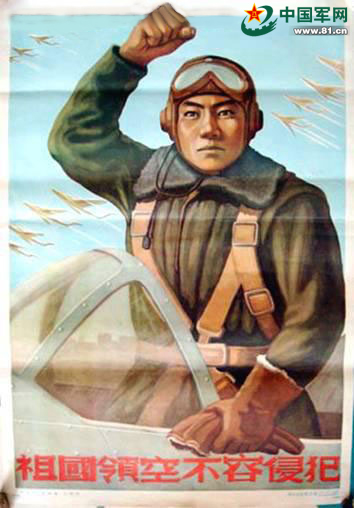 宣传画中穿56式冬飞行皮服的飞行员