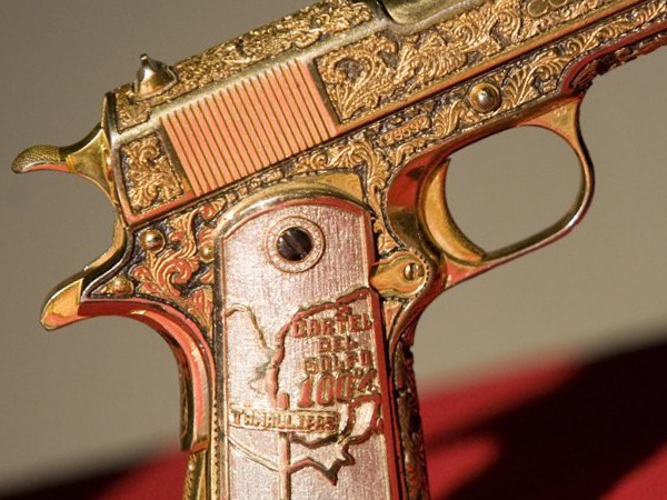 打造一把黄金枪械是不少“土豪”军迷的最爱,以下这组图片就是黄金枪械的收集整理。不过令人意外的是,除了AK-47步枪、M1911手枪、沙漠之鹰手枪等,还有黄金版的司登冲锋枪与黄金版M60机枪。