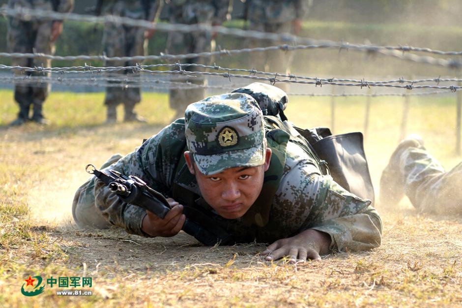 解放军新兵训练杀气四射 狂吼拉树挥板砖