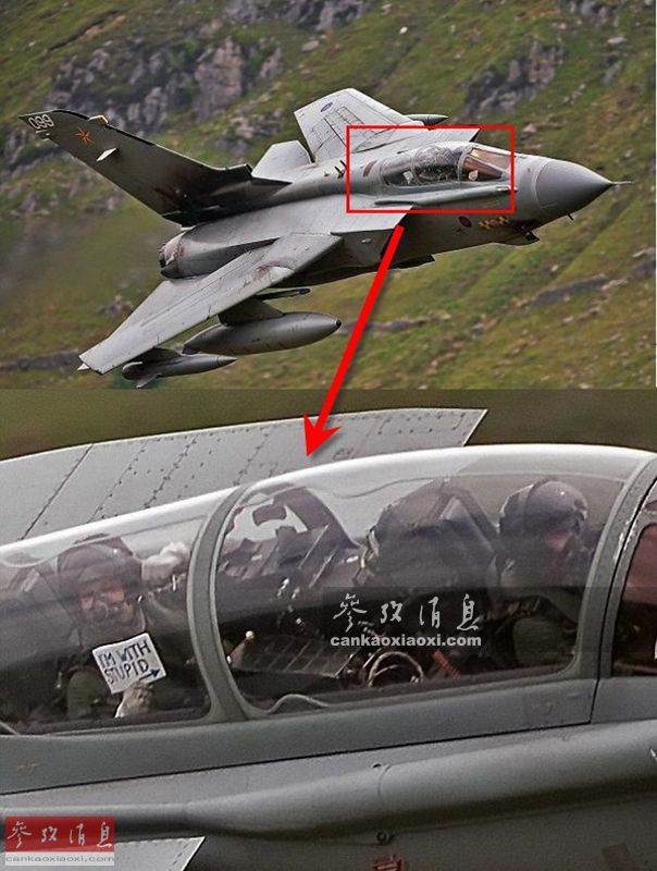 还有一些恶搞场面也是只在当地能看见,例如这架”狂风“攻击机的后座飞行员就在穿越峡谷时,打出了”我的前座是傻瓜“的恶搞标语。