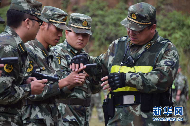 教员为学员纠正射击动作