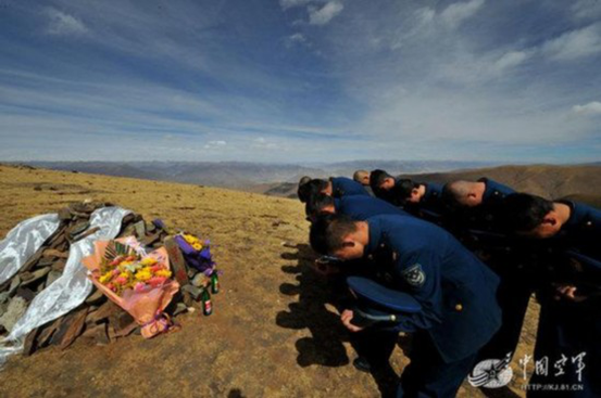 甘巴拉雷达站的官兵祭奠老兵张在安。郭超英 摄