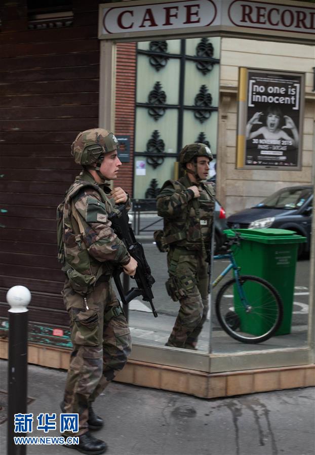 组图:法国巴黎街头加强警戒 士兵持枪巡逻