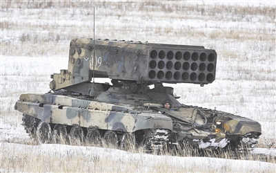 上图为俄制TOS-1A重型喷火坦克。