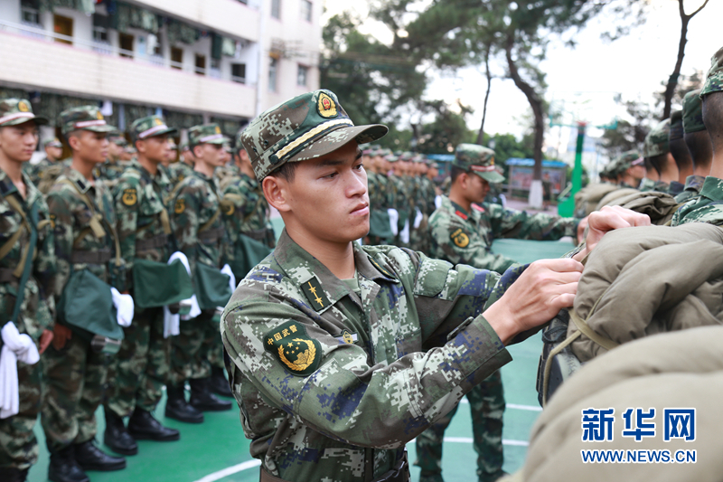 带兵骨干检查新兵的“背包”