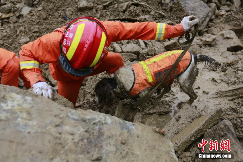组图:浙江丽水山体滑坡救援犬负伤仍坚持搜救