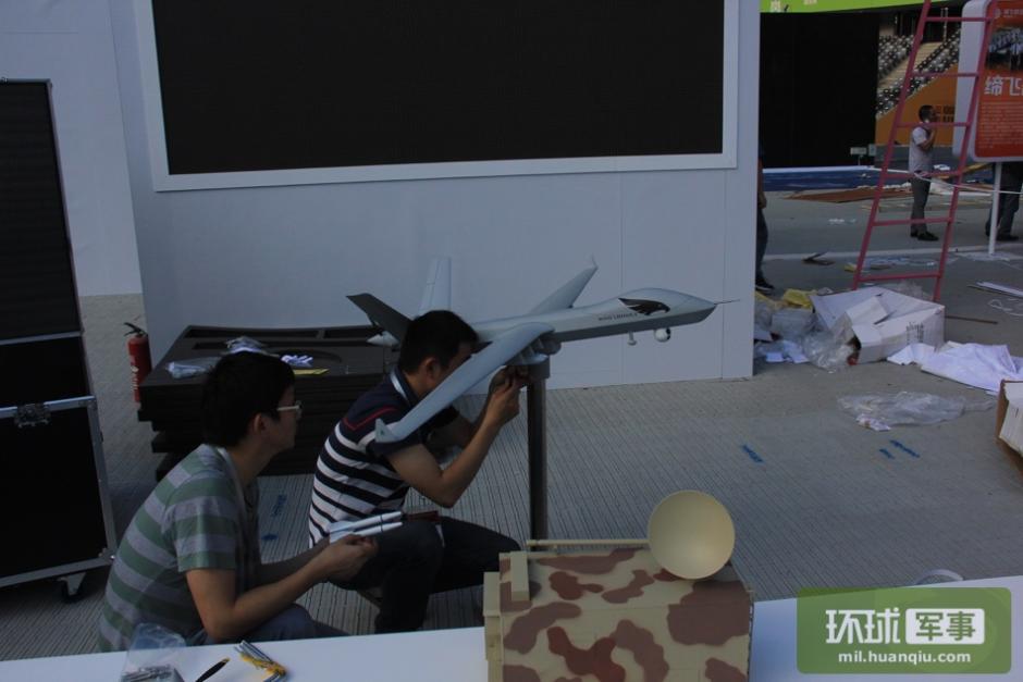 工作人员正在组装翼龙-2无人机模型