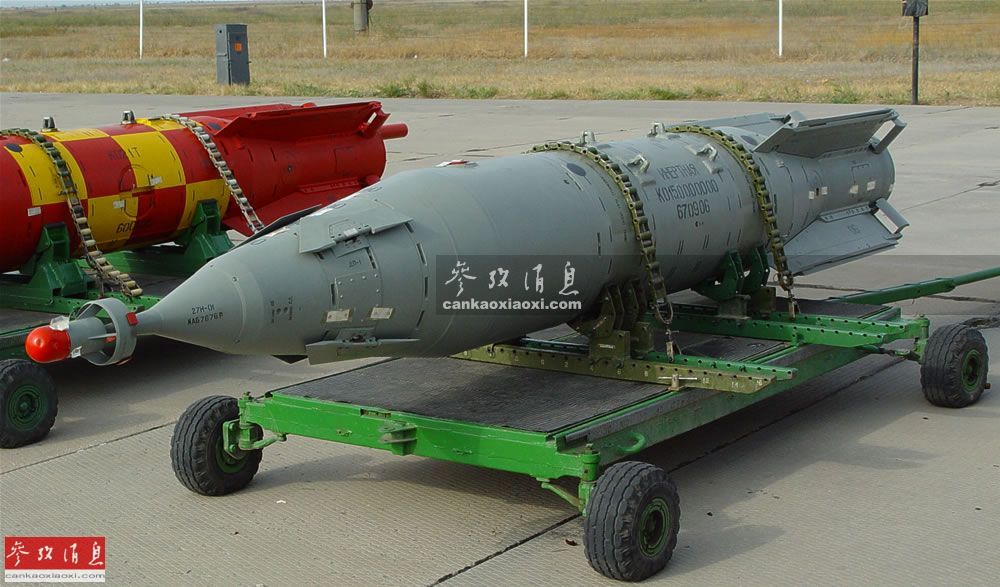 11月1日,俄罗斯空天部队新闻发言人伊戈尔·克里莫夫上校对记者称,俄军机近日对恐怖分子使用了威力巨大的航空制导炸弹KAB-1500L。他还称,“KAB-1500航空制导炸弹因其重量为1.5吨和高精确度而得名。该系列重型制导炸弹由俄罗斯“地区”联合企业研制,该系列有多种型号,既可使用激光制导系统,也可使用电视制导系统,是一种威力巨大的制导炸弹。图为KAB-1500L激光制导炸弹。