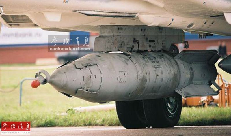 除苏-34外,苏-24M也可挂载KAB-1500重型炸弹。图为苏-24战斗轰炸机挂载的KAB-1500L激光制导炸弹。