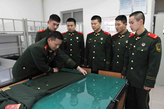 天气逐渐变冷,现在执勤,按照规定都必须着大衣,退伍士官正在教战士们叠大衣。郑光傲 摄
