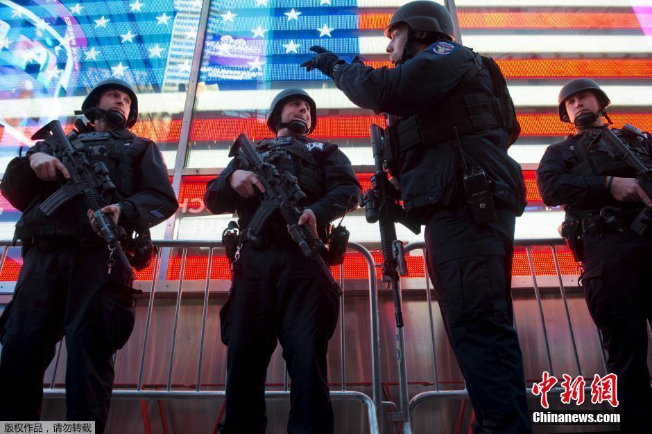 当地时间2015年11月19日,美国纽约,警察在时代广场附近巡逻。极端恐怖组织“伊斯兰国”(ISIS)18日发布视频威胁称,将袭击纽约。纽约时代广场、中央公园等均是其恐吓目标。纽约市市长比尔·德布拉西奥说,警方正在“采取一切必要的预防措施”,恐怖组织就是要制造恐慌,纽约不会被吓倒。