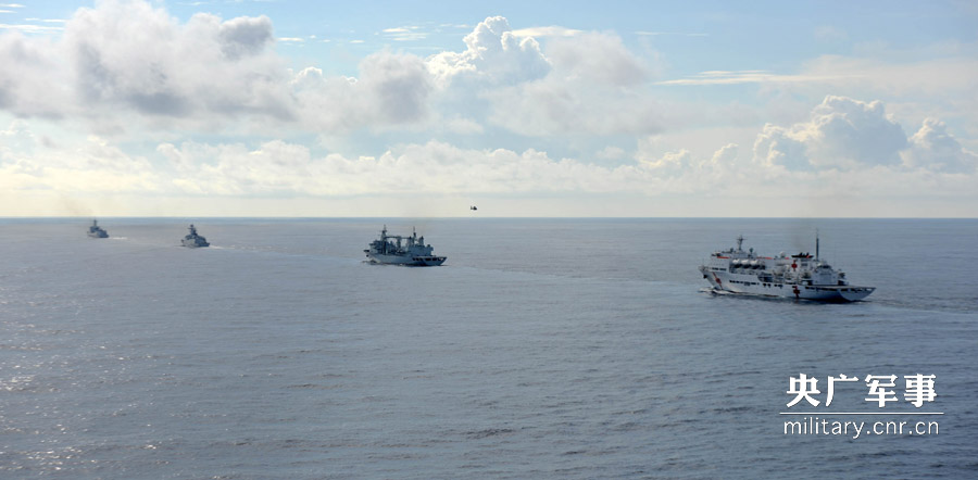 15点,国际人道主义海上医疗救护与后送演练正式展开。参演舰船包括导弹驱逐舰济南舰、导弹护卫舰益阳舰、综合补给舰千岛湖舰组成的152舰艇编队及和平方舟医院船,出动舰载直升机两架、小艇4艘。