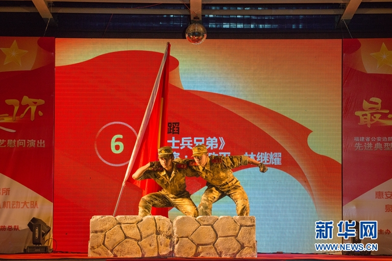 19日晚,福建边防总队“先进典型事迹宣讲暨平安惠安·东岭爱民固边模范镇文艺汇演”活动在这个总队泉州边防支队东岭边防派出所举行,这个支队边防官兵与泉州东岭镇企业家代表、师生代表及当地群众一同观看了先进事迹报告会和文艺演出。