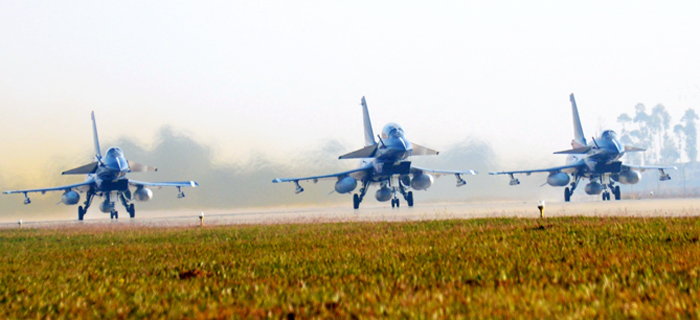 应泰国空军邀请,中国空军八一飞行表演队于22日离境飞赴泰国,参加中泰空军“鹰击-2015”联合训练闭幕式飞行表演。图为3架歼-10表演机编队起飞。 刘全 摄