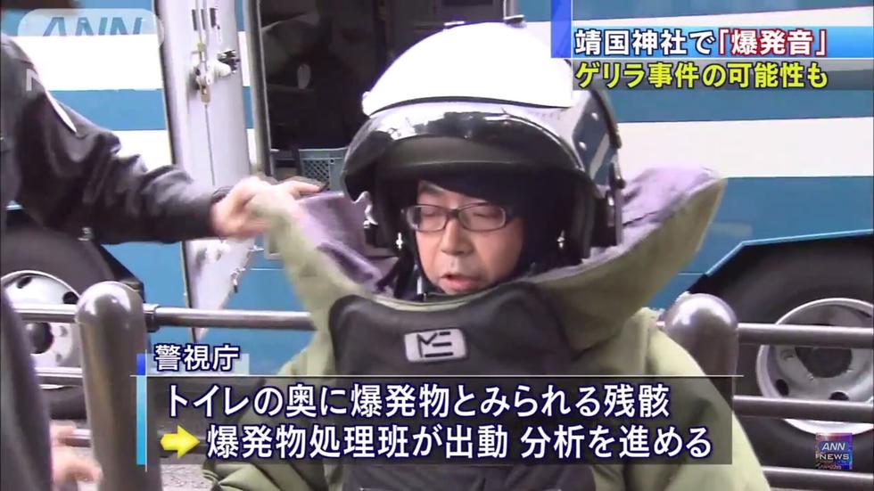 【环球网报道】据日本电视台11月23肉报道,位于日本东京千代田区的靖国神社23日上午10时左右突然传出爆炸声,来自自日本警方的消息称,爆炸现场有两枚爆炸物,其中的一枚发生爆炸,另一枚未引爆。报道称,日本警视厅认为该袭击事件旨在针对靖国神社。由于仍存在一枚未引爆的爆炸物,日本警方出动拆弹组进入现场。
