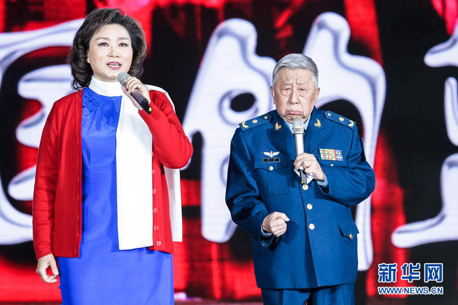 资料图片:阎肃激情演唱。(图片由空军宣传部提供)